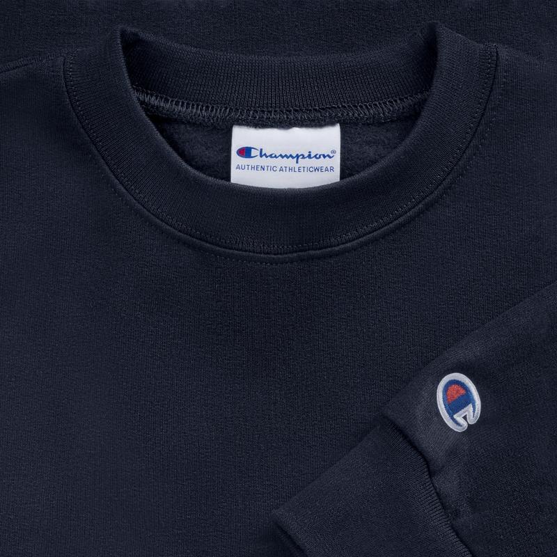 - Champion “C” logo at left cuff