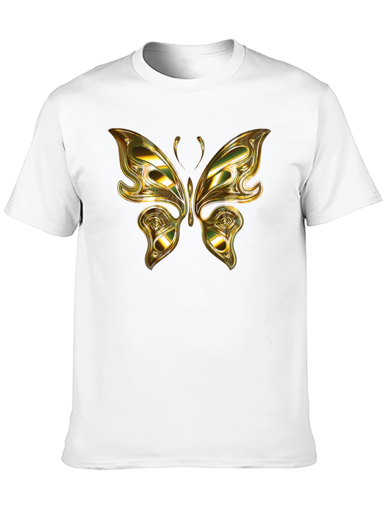Elevate your casual style with this striking black t-shirt. Featuring a bold, artistic golden butterfly graphic front and center, this tee is sure to turn heads. The intricate design of the butterfly gives a unique and premium look. Crafted from a soft and comfortable material, this t-shirt offers both style and comfort for everyday wear. Pair it with jeans or chinos for a laid-back yet fashionable ensemble. Perfect for expressing your individuality and love for nature-inspired art. A must-have addition to any wardrobe!