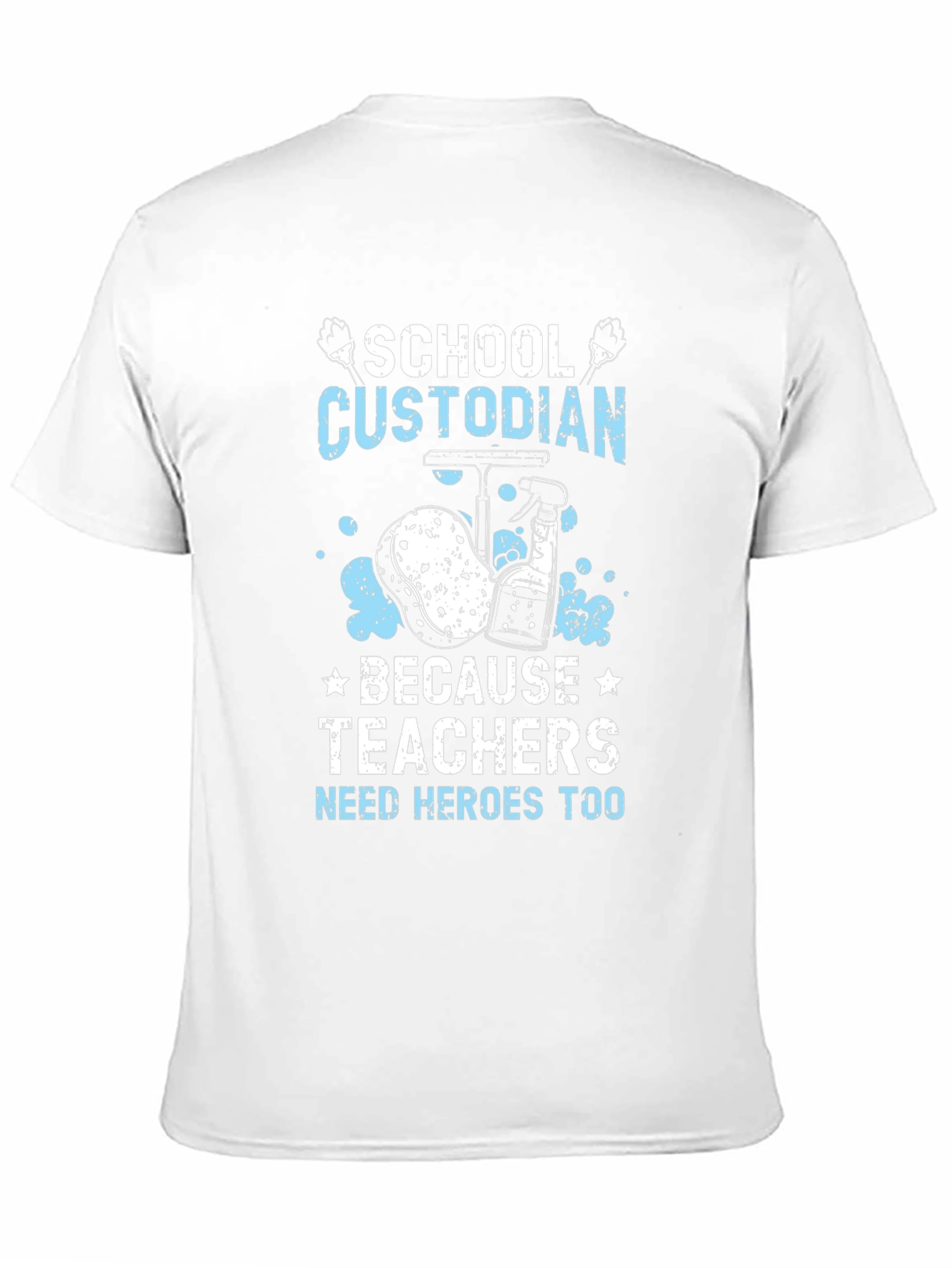 Show your appreciation for the unsung heroes of education with this unique t-shirt. Featuring a bold design with the words "School Custodian Because Teachers Need Heroes Too", this t-shirt celebrates the important role custodians play in schools. The design includes cleaning supplies, adding a fun touch. Made from comfortable material, this t-shirt is perfect for everyday wear. It's a great way to show support for school custodians and makes a thoughtful gift for the custodians in your life. Wear it proudly and let everyone know that you recognize the heroes who keep our schools clean and safe!